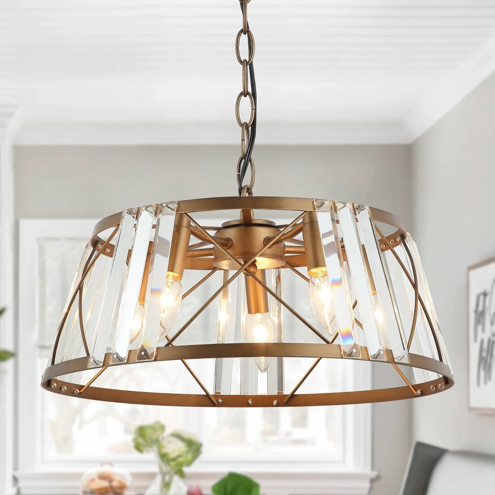 This is a unique metal-crystal chandelier design, these diagonal metal lines, and mixed metal elements are ideal for industrial and rustic settings, while at the same time, the graceful crystal geometric elements playfully capture the clear hammered glass shades to deliver a warm, welcoming wash of light. The metal frame is non-fading, not easy to scratch, easy to clean, and has better light transmission and heat dissipation. The minimalist and atmospheric design never goes out of style, no matter where you install this light fixture, you'll enjoy the stylish and elegant ambiance it creates. We use a high-quality metal socket and lamp arm to ensure the durability of the product. Therefore, you do not have to worry about the deformation of the lamp body and the integrity of the packaging.