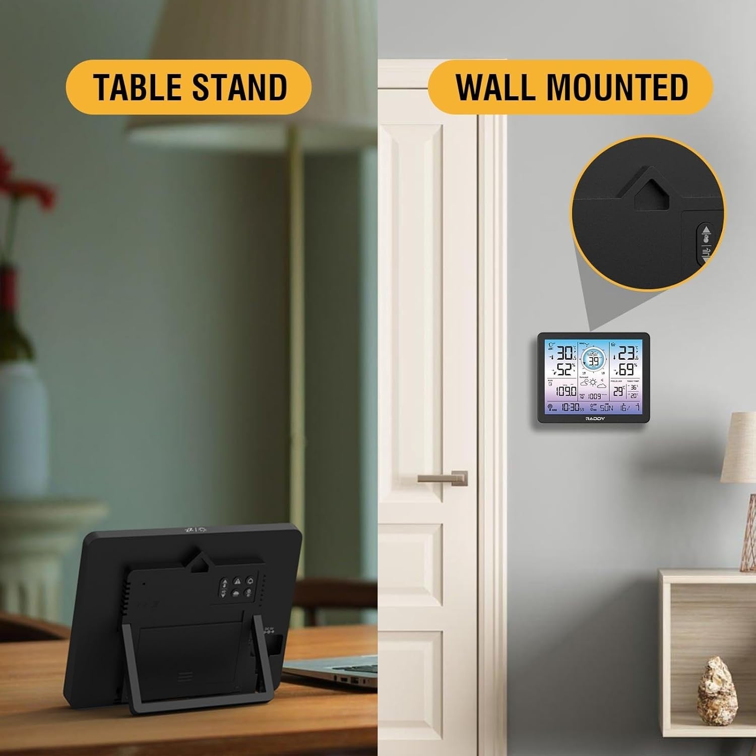 Raddy VP7 5-in-1 Weather Station Wireless for Indoor Outdoor 7.4" Large Digital