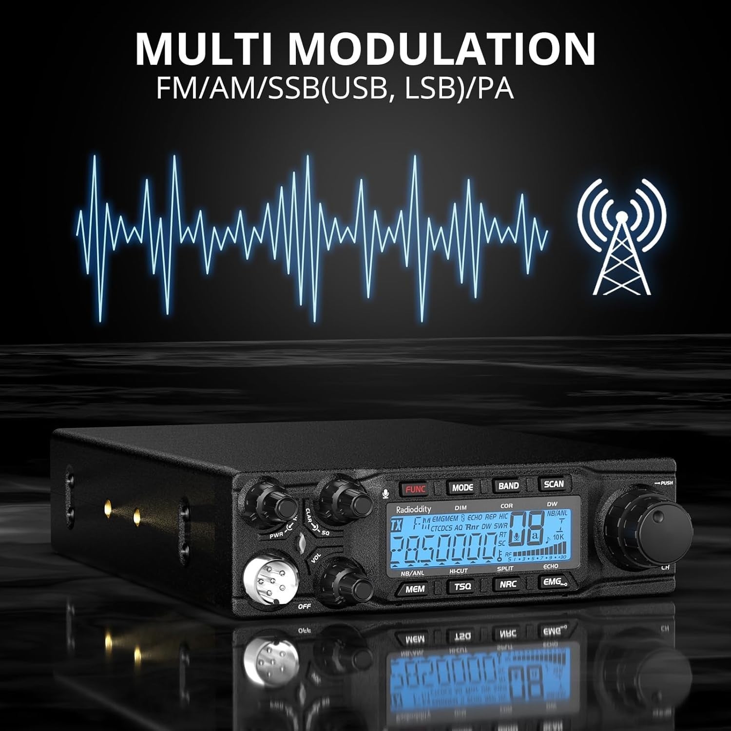 Radioddity QT80 10 Meter Radio, 80W High Power Amateur Ham Radio, SSB/AM/FM/PA Mobile Transceiver with RX & TX Noise Reduction, CTCSS/DCS, ASQ, SWR High Alert