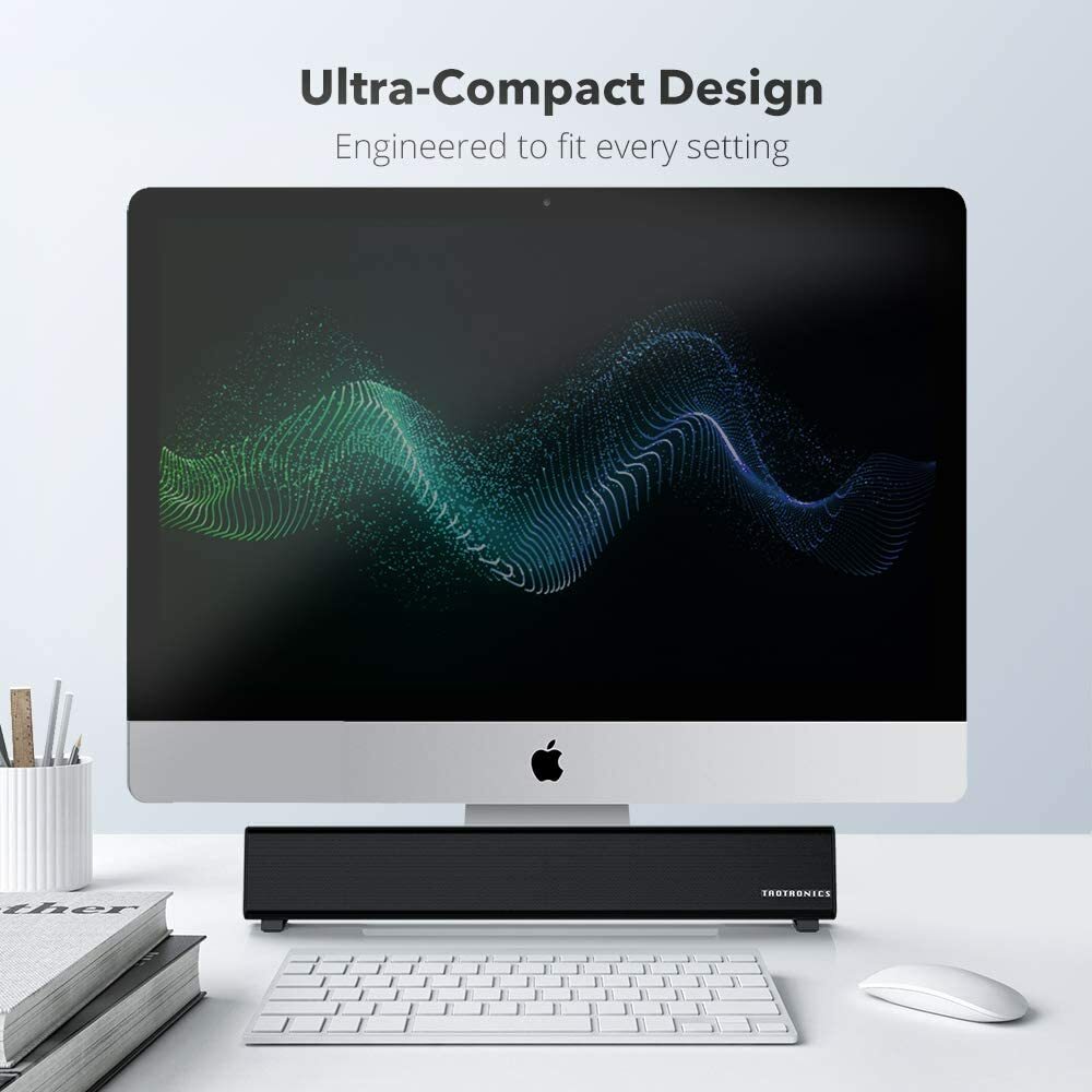 - Fits your desk perfectly: The ultra-slim sound bar is tailored to save precious space and avoid cluttering