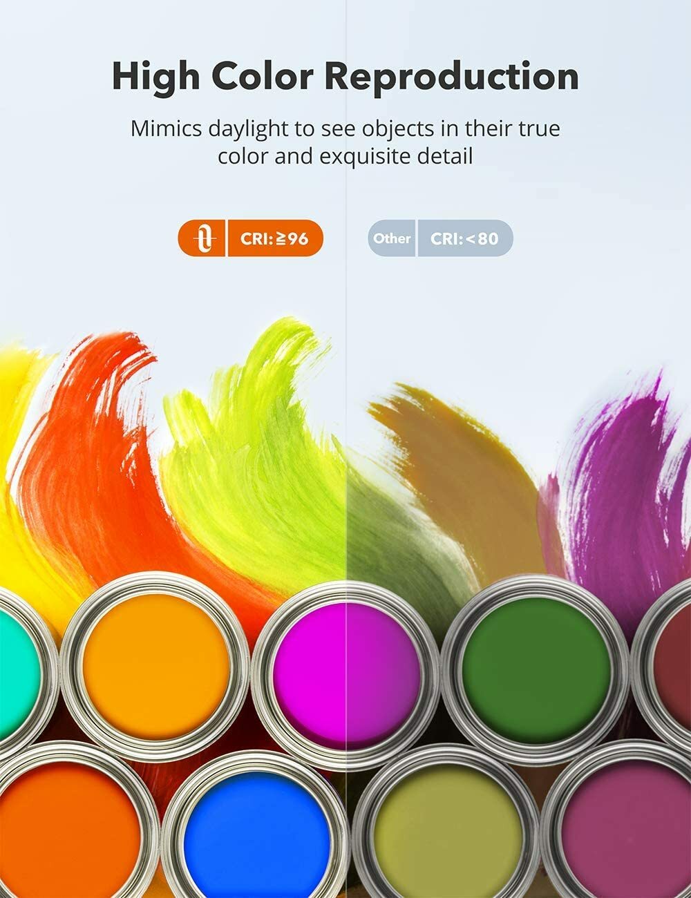 Say goodbye to eye strain and glare with TaoTronics LED Desk Lamp. Forward beam technology protects your eyes as you work, study, craft from unwanted shadows and direct light. The light source boasts a high color reproduction that's similar to sunlight to accurately reflect colors and object details.
