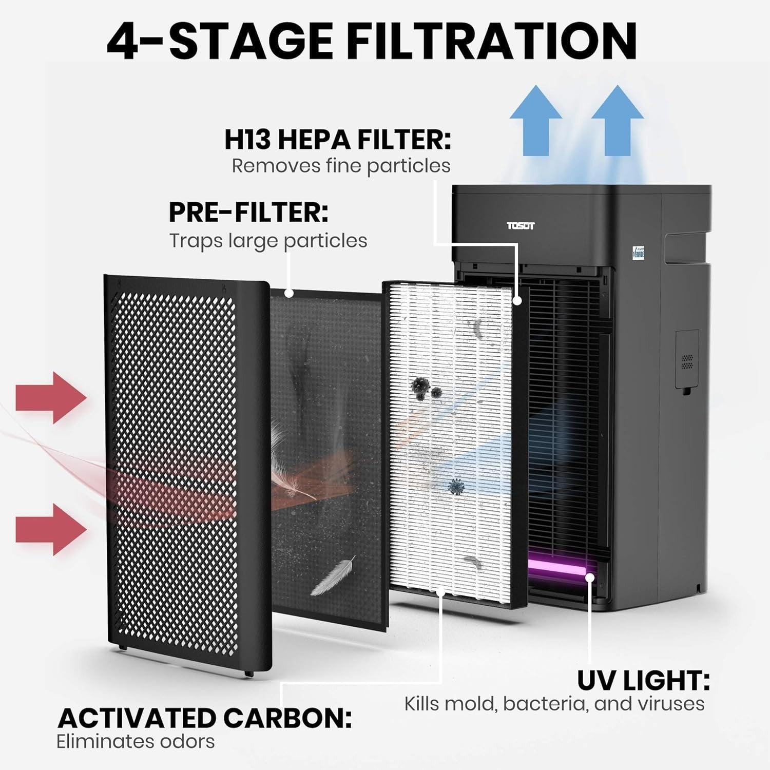 TOSOT Air Purifier with H13 Medical Grade True HEPA Filter, UV Light Sanitizer, Remove up to 99.97% Dust Smoke Mold Pollen, Ideal for Large Room up to 450 sq. ft, Home, Business, Office, School