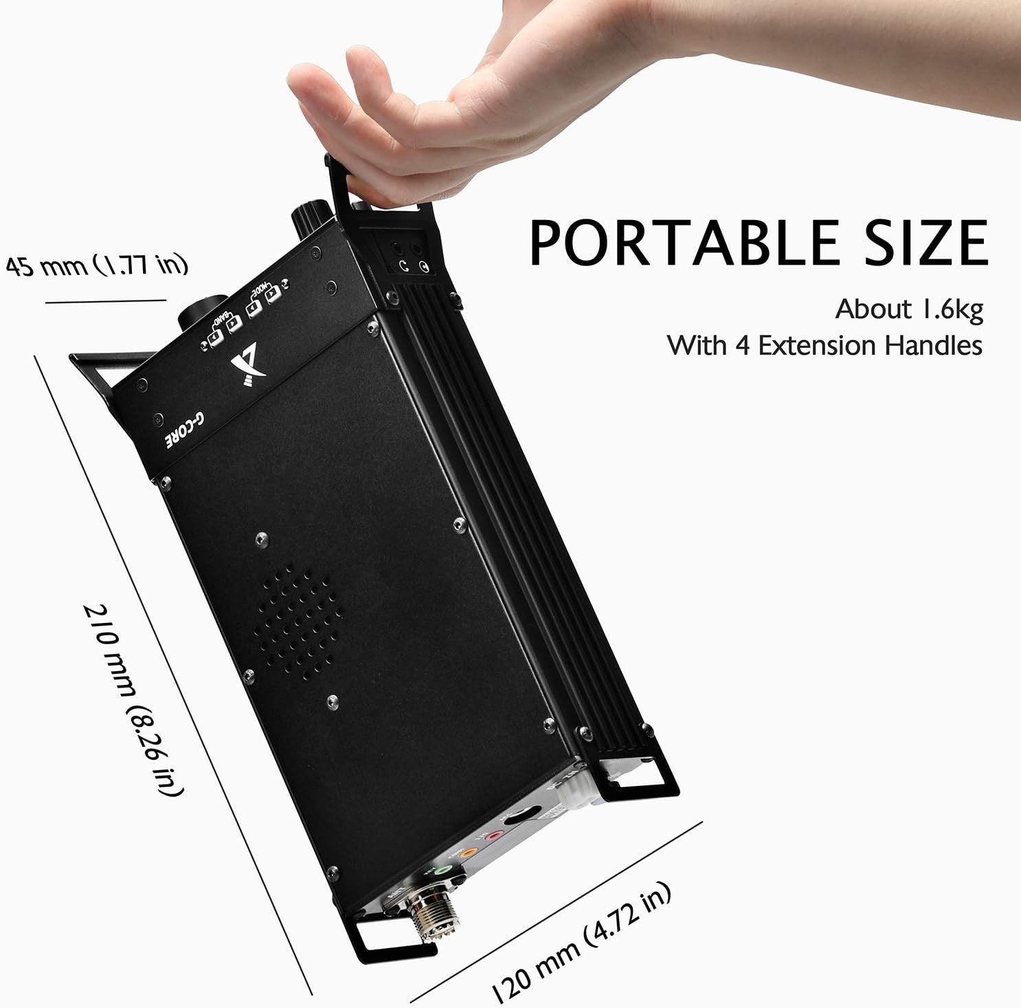 | Size of the radio | 4.75" x 1.75" x 8.25" (main body without handles) |